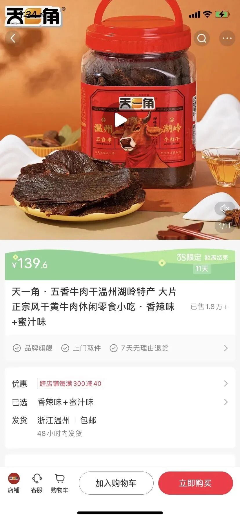 拿下面牛肉干这个账号举例,这个账号卖的是温州一家知名牌子的牛肉干。