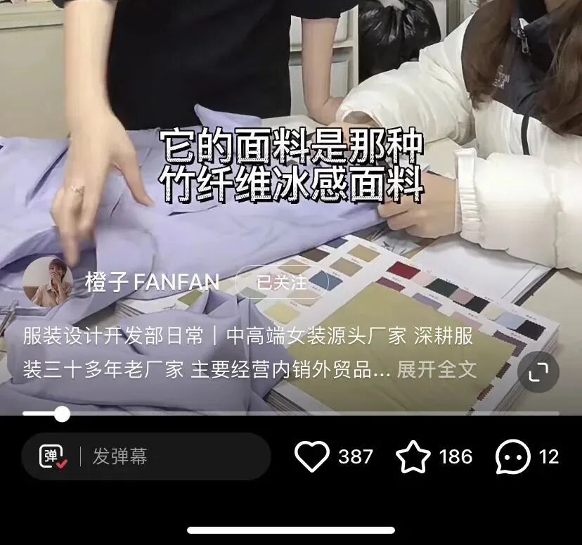 除非了车间以外,专业知识也是卖点。网红可能最多知道这个面料叫什么,再细就讲不出来了,但老板不一样啊,他们连原材料都能讲的明白。