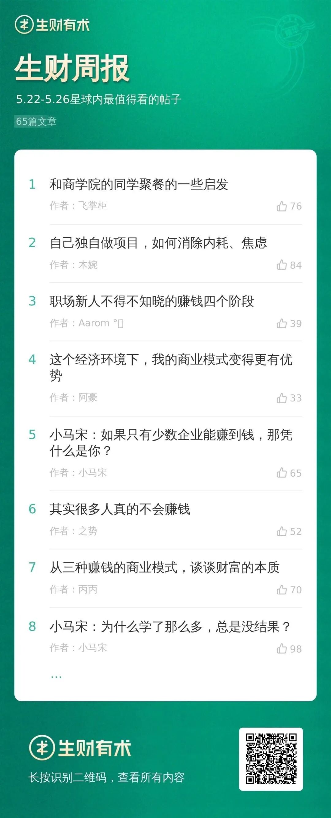 以上,便是本期生财周报的全部内容,圈友可点击「阅读原文」查阅星球原帖,原帖里附带对应内容的链接,可直接跳转。