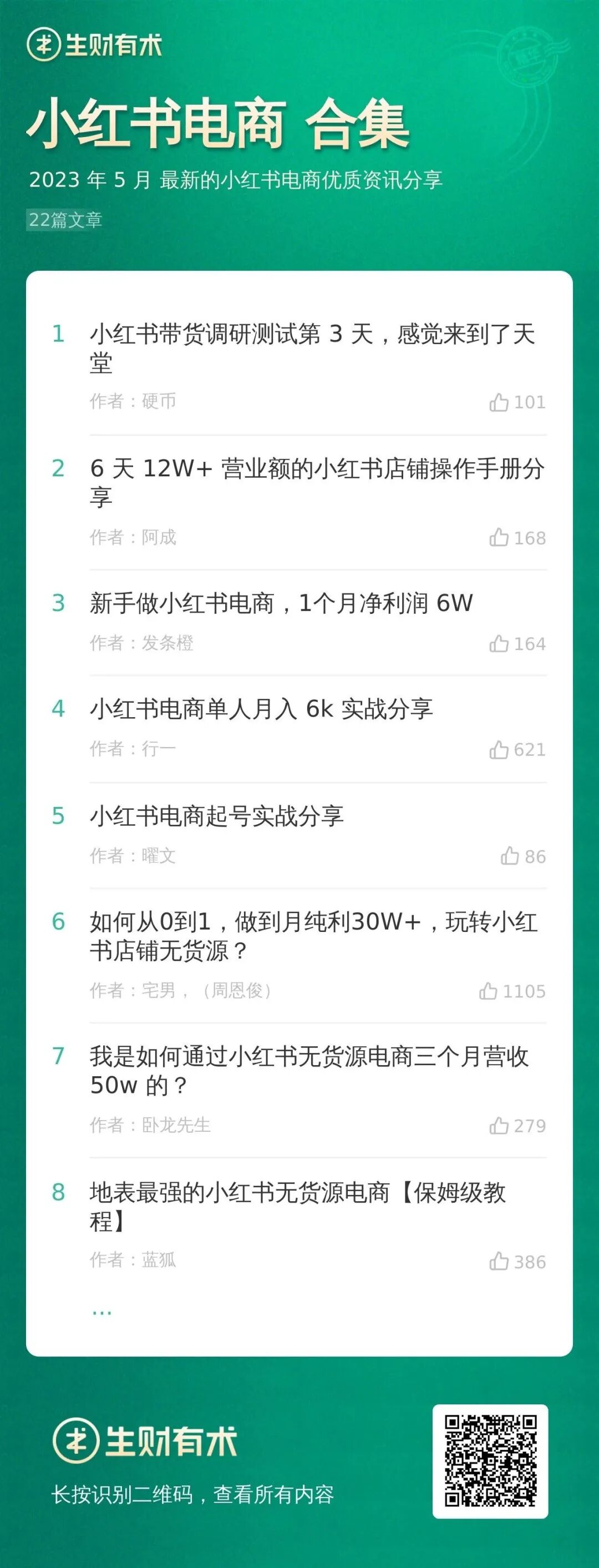 为此整理了生财有术星球最值得看的关于小红书电商的22篇内容精选,全部来自一线实战高手的宝贵经验,不仅有详细的教程,还有矩阵化、付费流、有货源等进阶玩法。