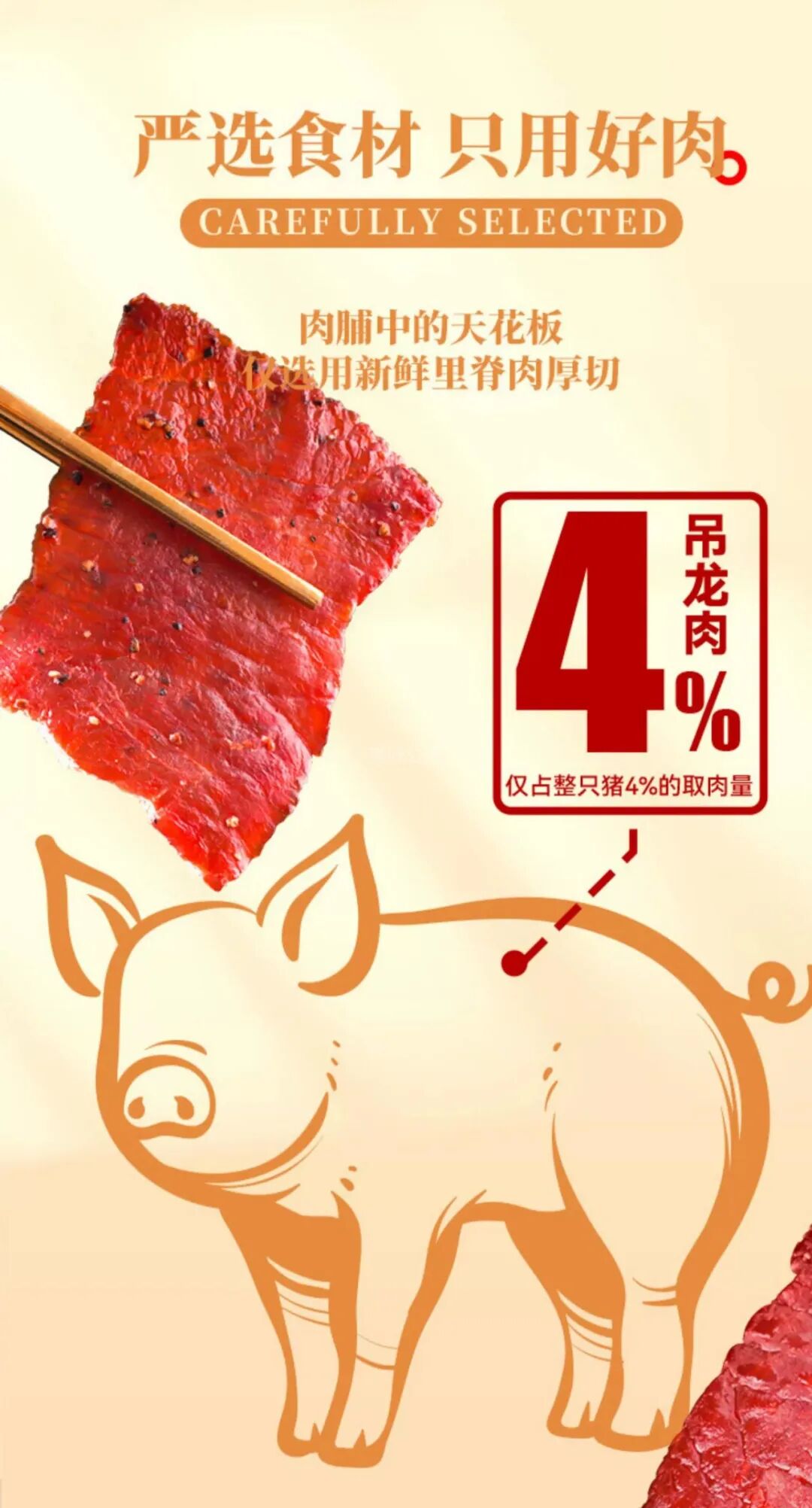 原料都是优质本地猪身上脂肪最少的部分“吊龙”