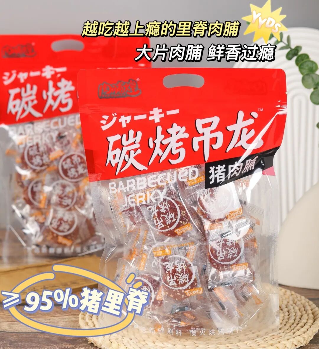 ≥95%的里脊肉含量让肉脯的味道再提高了好几个档次