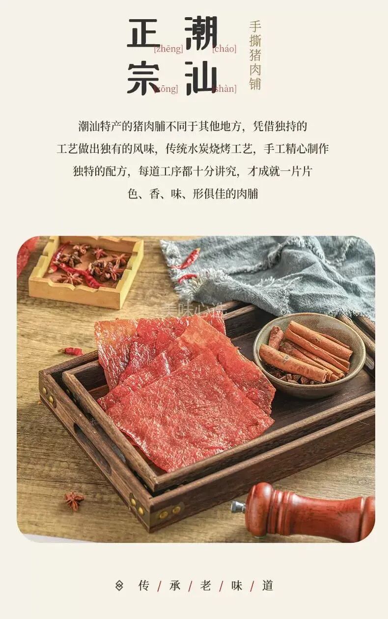 荔枝木炭烤让猪肉脯具有独特的果木香,一点都不会腻