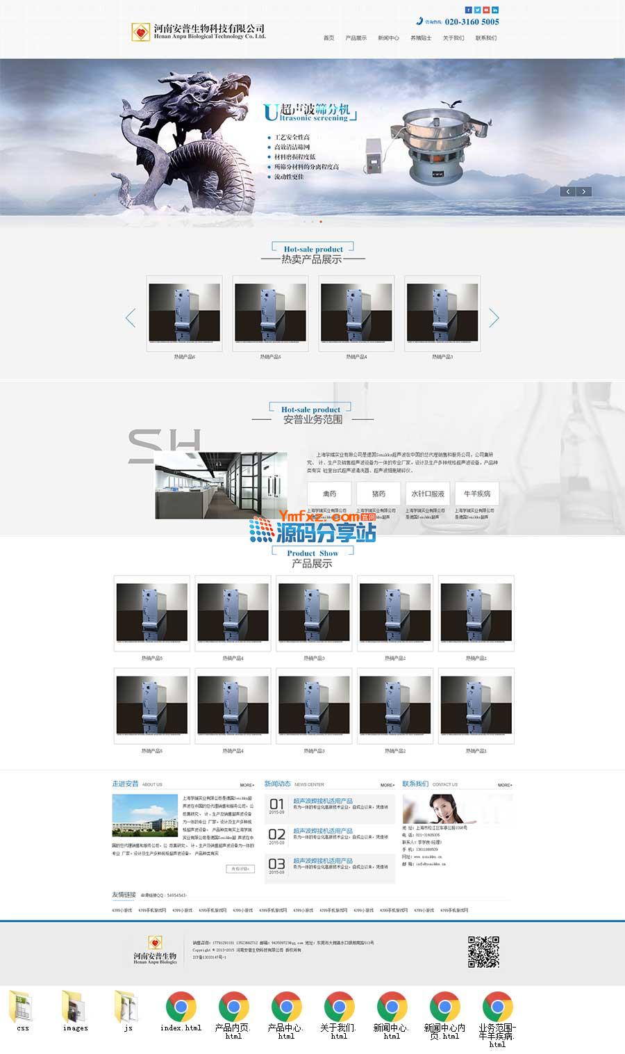简洁大气的生物科技超声波设备公司网站模板,超声波设备研究、设计、生产及销售企业官网模板,共包含7个html页面模板。