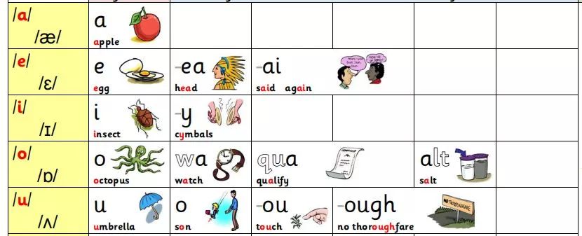 因此这张表总结出了所有Phonics的发音规律,孩子有发音不清楚的地方,看一下这张表格、找一下对应的词根就很快明白了,因此表格是很值得孩子收藏和借鉴的!
