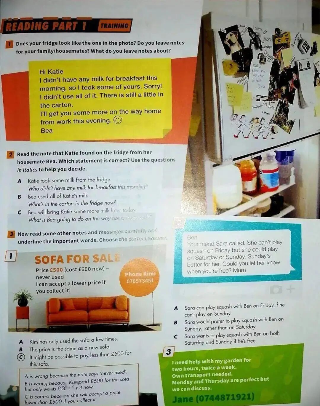 Training”为考试的每个部分提供指导和提示。下图为KET阅读第一部分的“标识匹配题”的训练。