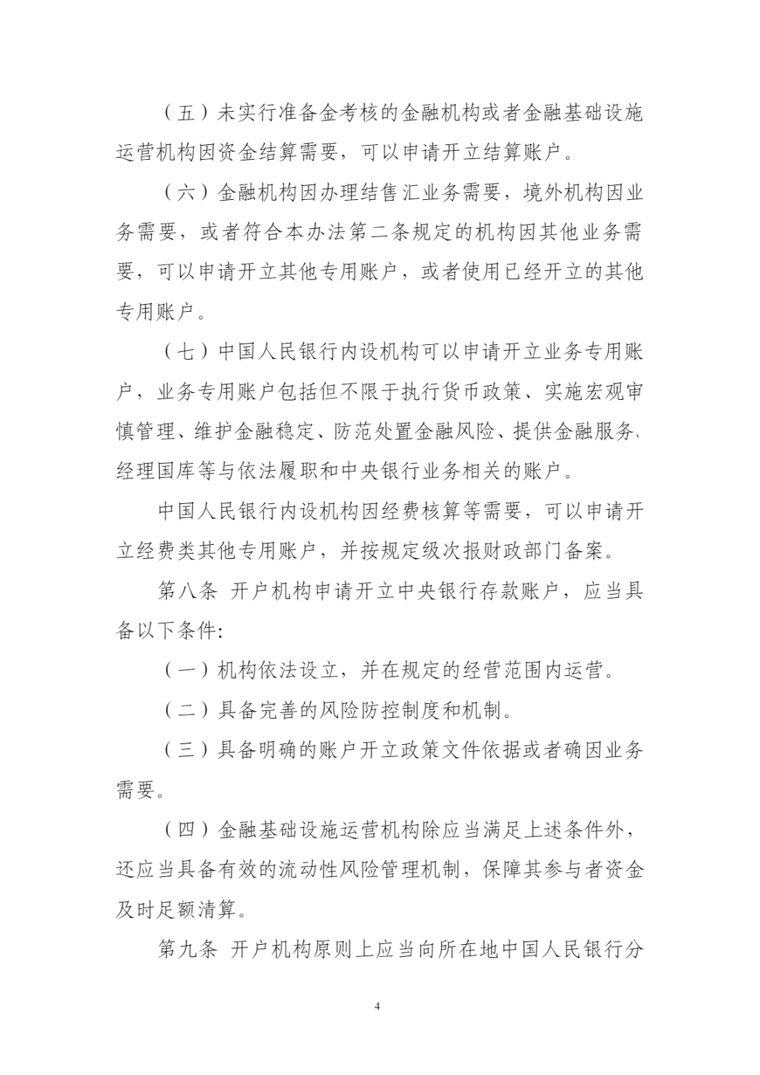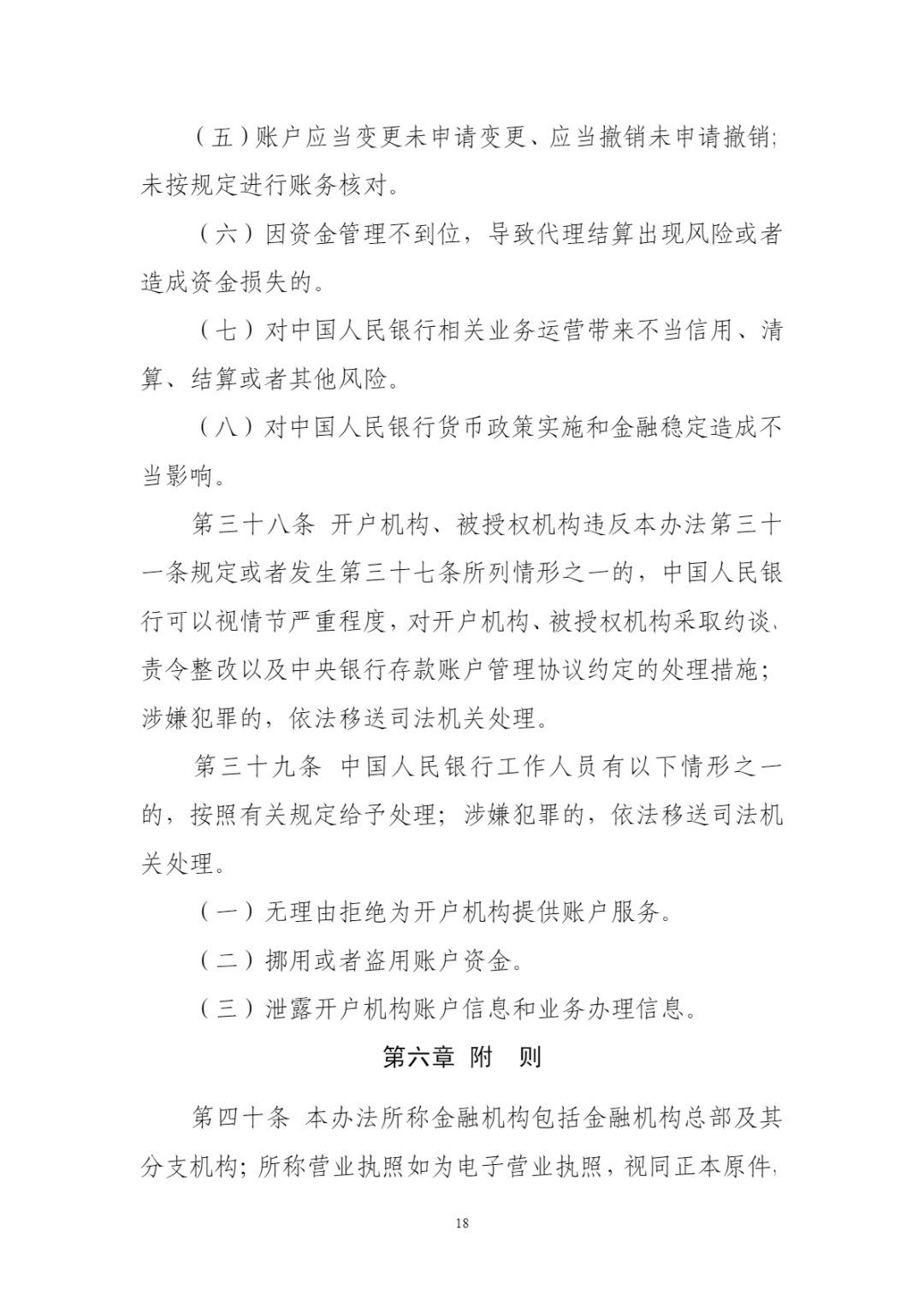 《办法》共六章43条,统一了中央银行存款账户的分类、开户条件和评估标准,提升了获得中央银行账户服务的可预期性和便捷性;明确了中央银行存款账户开立、变更、撤销及使用管理要求,实施账户全生命周期管理。《办法》还特别注重加强关键环节风险管控,规范代理结算和账户安全管理要求,有利于降低中央银行存款账户资金结算风险,保障业务连续性。