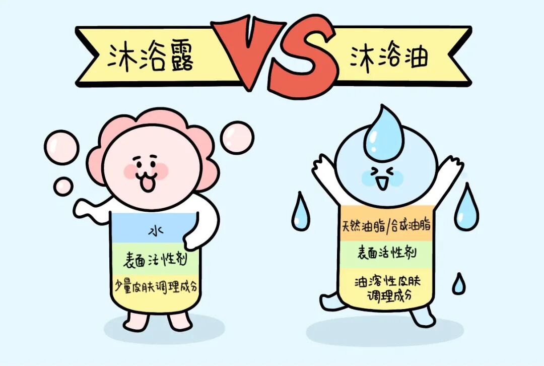 其实,它俩底子里都是用来洗澡的家伙事儿。最大的区别是,沐浴油里的油脂含量高。