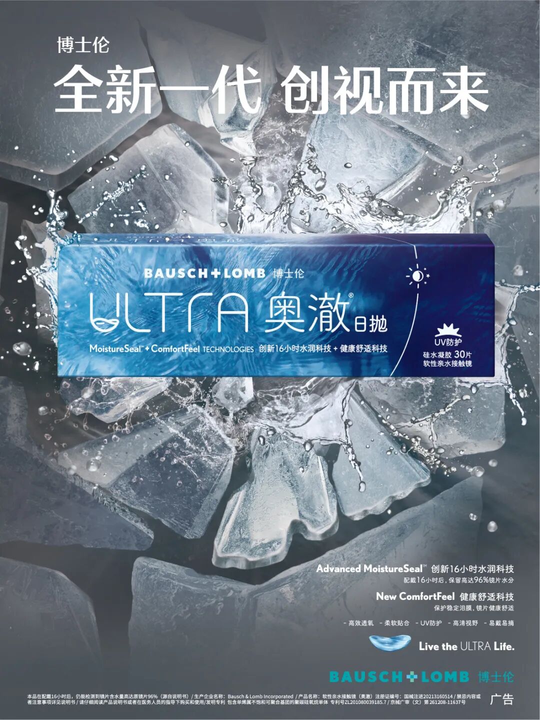 博士伦成立于 1853 年、是全球眼健康领域的先行者,博士伦 170 年科技驱使,只为让舒适更进一步。这次博士伦全新推出的奥澈 ULTRA 亲水性硅水凝胶日抛,兼顾高效透氧和舒适含水量,还自带长时间水润「黑科技」且维持泪膜稳定,是新一代的创视产品。