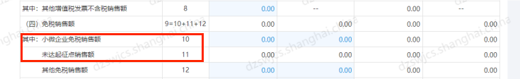 小规模纳税人按月申报销售额不超过10万元或按季申报销售额不超过30万元适用免税政策,个体工商户纳税人填写第11栏,企业纳税人应填写第10栏。