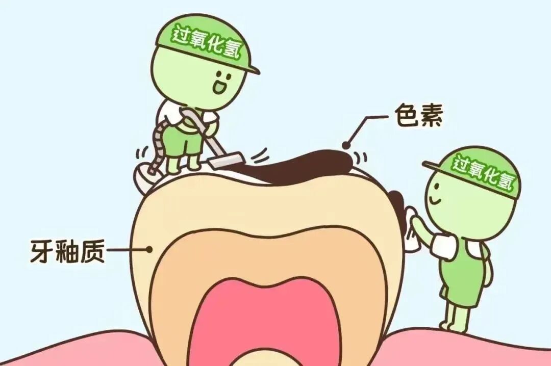 因为从原理上来说,过氧化物(低浓度)只会和牙齿表面的色素分子反应,对坚硬的牙釉质本身,是没有侵蚀或伤害的。