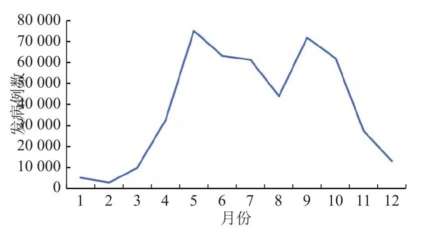 不过这其实是可以预期的一件事情。根据海口市疾控中心2021年发表的一篇对于我国各省市手足口病研究统计分析的论文,可以看到,我国的手足口疫情呈现单峰或者双峰的季节性 —— 每年的4-5月份开始,就是我国手足口病的常规高峰季节,区别在于南方早一些,北方晚一些。而到了9-10月份的秋冬季,南方可能会多一次高峰。