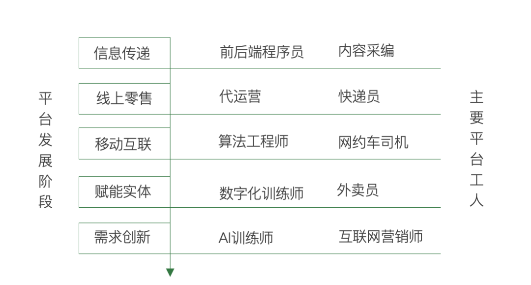 目前能看到部分行业平台工人数量触顶,来自平台发展进程中必然的结构性变化。希望平台工人吸纳更多的就业,我们需要智能化的进步,更需要需求多样性的实现。AI、XR等新平台的出现也会再次带来新一轮的基础建设和新的上层内容的机会。