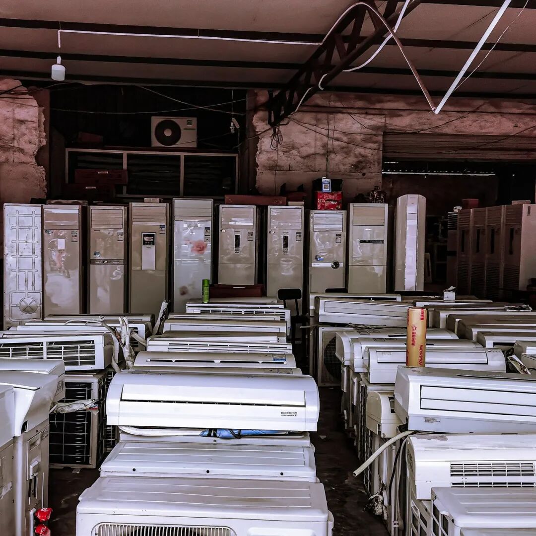 在旧货市场,只需要几十块钱,就可以买一张新国标的低能效能效标识以及品牌标签,针对年久泛黄的空调,还能提供打磨、抛光、封膜等一条龙翻新服务。