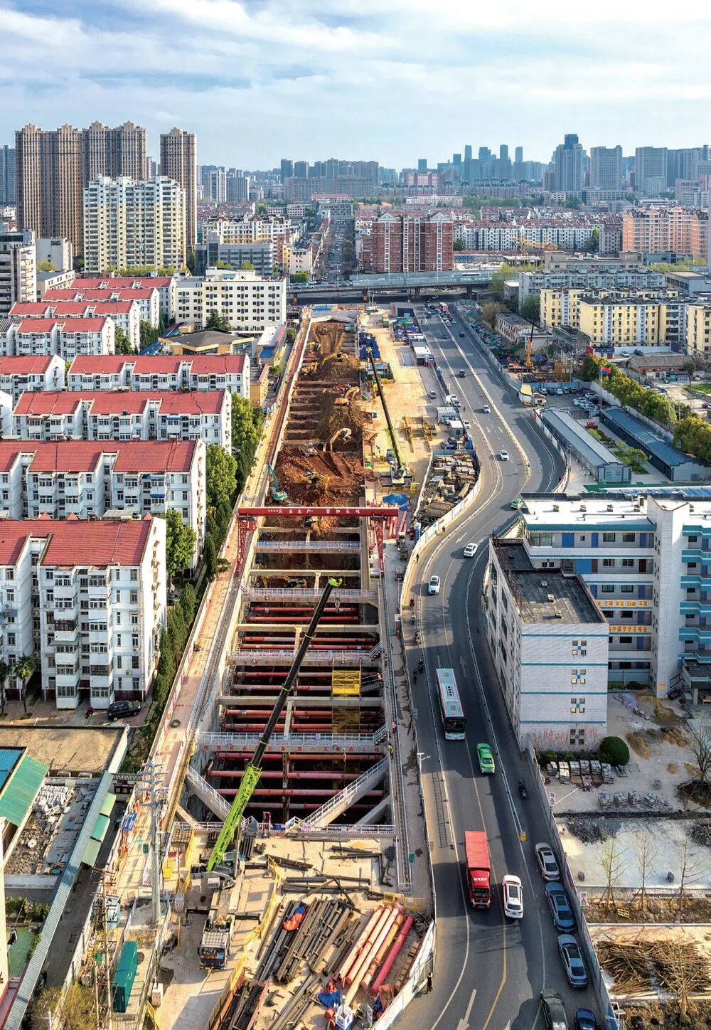 4月2日,合肥新桥机场S1线青阳路段现场,建设者们正在施工