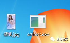 结合邮件钓鱼等方式把“图片”放送给他人,引诱他人上钩,对方双击“图片”后,会同时执行artifact.exe和壁纸.jpg,而且上线cs