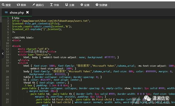不过这样用户名密码的查看并不方便,写个show.php来进行展示