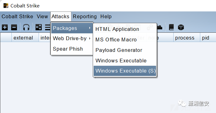 当双击打开该excel时就会执行恶意代码下载cs后门并运行 ,上线cs