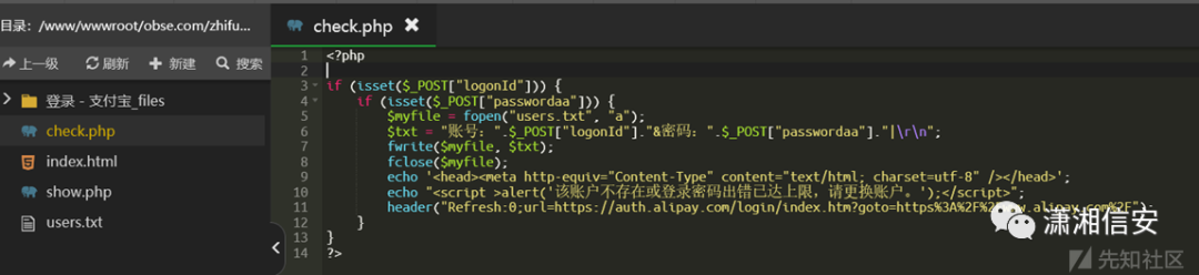 4、如果用户提交账户密码,就会被日志文件记录,日志文件位置:/www/wwwlogs/access.log