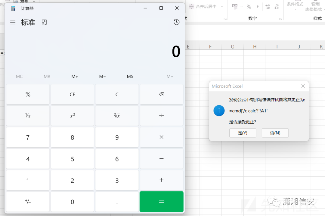 Excel注入是一种将包含恶意命令的excel公式插入到可以导出csv或xls等格式的文本中,当在excel中打开xls文件时,文件会转换为excel格式并提供excel公式的执行功能,从而造成命令执行。