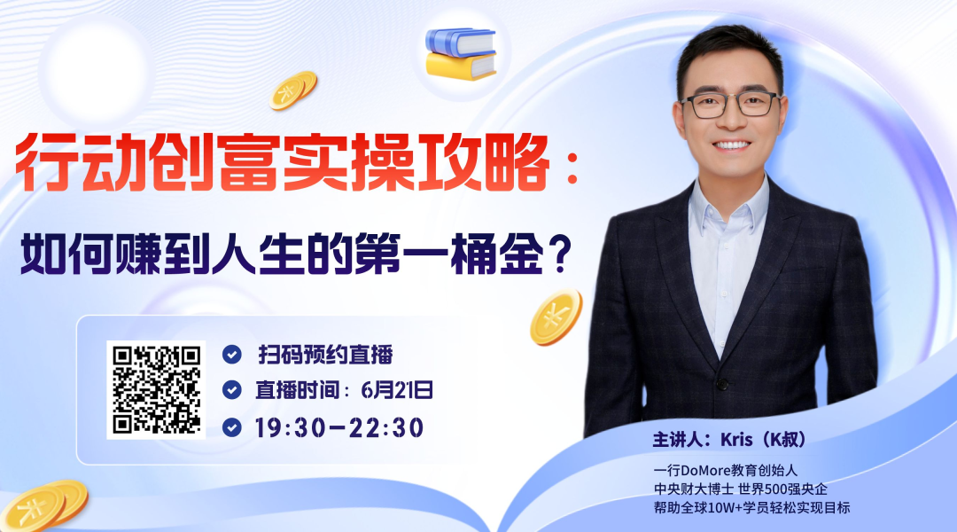 另外,明天晚上7点半,我会做行动创富挑战营的最后一场直播,分享: