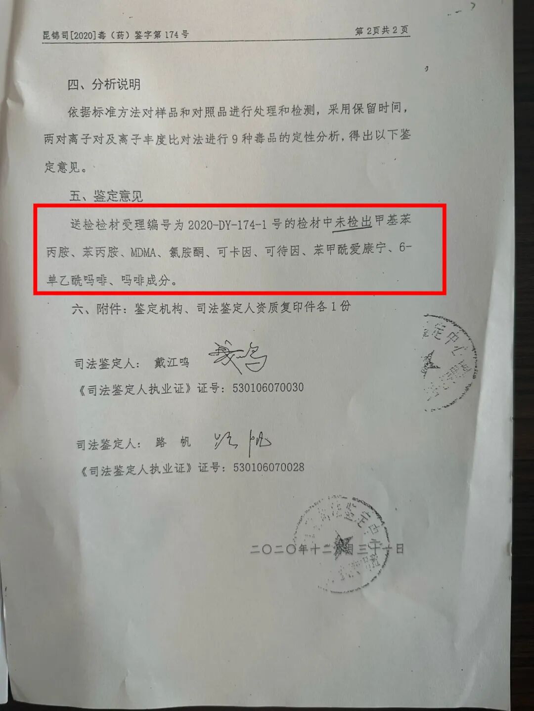 虽然行政复议这条路未获成功,但周俊并没有放弃寻找证据。在此期间,他们先后找了云南维权司法鉴定中心和昆明锦康司法鉴定中心,对刘向阳做毛发检测,两家司法鉴定机构出具的鉴定报告均为阴性。其中,昆明锦康司法鉴定中心,是昆明市公安局委托的司法鉴定机构。