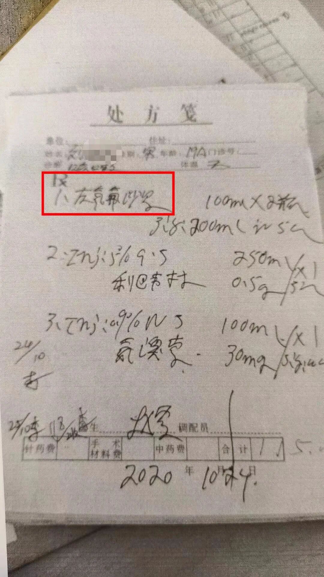 给刘向阳检查的,是昆明市五华区莲华荷叶山社区卫生服务站的医生赵雪。赵医生给刘向阳开了两张处方单,一张输液处方,所用药品为左氧氟沙星、利巴韦林、氨溴索;另一张为口服处方,所用药品为阿奇霉素分散片、清肺化痰丸、三九感冒颗粒,处方开具时间为2020年10月24日。其中,24日给刘向阳输液的是护士李堂林,25日则是护士李耀玲。