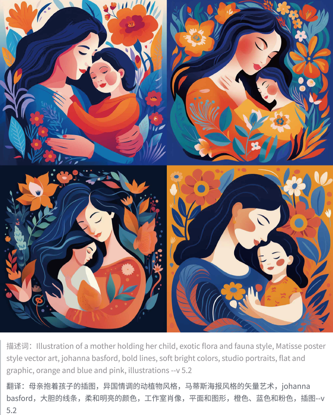 再者,马蒂斯的作品有很强的平面感,这也是他的创新之处。他让观众摆脱了传统的三维视觉空间,更专注于画面的整体布局和颜色。总的来说,马蒂斯的海报风格就是一场色彩和形状的盛宴,它们在一起创造出了一种既简洁又充满生命力的视觉效果。如果你的企业也是提倡大胆,创新价值观可以试试这个风格,一定记得描述词里面加上 Matisse poster style 。