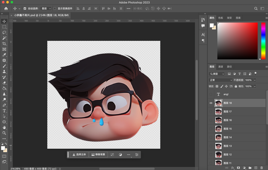 把你认为理想的表情图片存下来之后,导入 photoshop,进行抠图处理、色彩调整、细节修改等等操作。