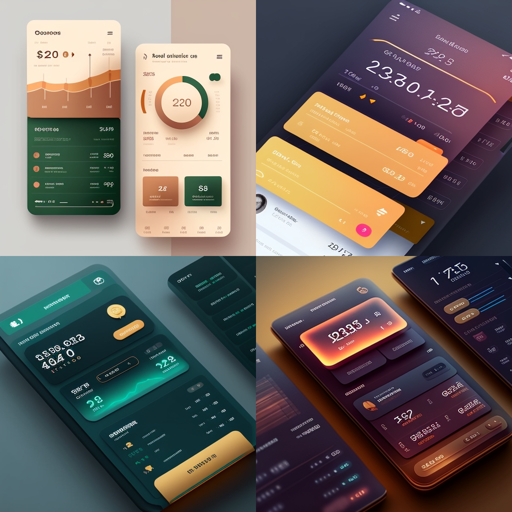 ▲关键词:「personal finance app」黑金是最能体现产品商务属性的配色,能让产品看起来稳重可信赖。黑金风格的金融类产品提到的Midjourney关键词包括:「财务、管理、银行、货币、金融」▲关键词:「App UI design, finance, dashboard, management, renting, color palette, Behance, Pinterest, dribble::3 –v 4 –q 2」▲关键词:「finance app mobile ui」▲关键词:「Mobile App design for crypto buying and selling 8k」▲关键词:「hight-resolution interface ui ux design app for stock trading app」▲关键词:「bank app design ui ux with logo」▲关键词:「banking mobile app clean ui ux behance dribbble inspiration图表界面是金融类产品中很重要的组成部分,利用多种图表样式来可视化展示数据信息。金融类产品中的图表AI关键词包括:「财务管理、饼图、仪表板、金融」▲关键词:「minimalist mobile app for finance users」▲关键词:「banking app with CO2 transaction dashboard in violett in pink colours」▲关键词:「create a mobile app, finance, colour, blue, purple, screens, login, signup, dashboard, settings, splash –v 4」▲关键词:「finance app, blue color palette, white background」▲关键词:「App UI design, finance, dashboard, management, renting, color palette, Behance, Pinterest, dribble::3 –v 4 –q 2」▲关键词:「An Android app about finance which designed in prisma type」▲关键词:「mobile app ui, personal finance management, emi tracker, savings management, add daily expenses screen, review pie charts, ui, ux, ui/ux, 8k, HD」![]()