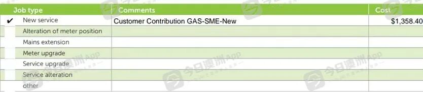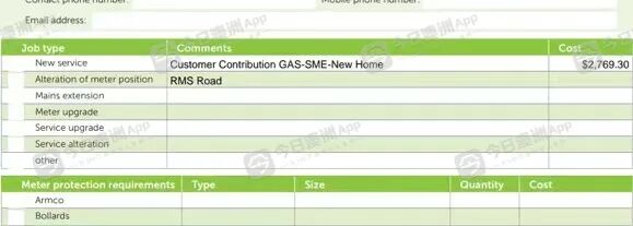 他告诉今日澳洲App记者,最初申请两户两表,但煤气公司仅给了一户一表的申请单,在收费一栏显示“客户贡献-煤气-新房”,金额为2769.30澳元。