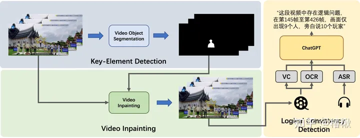 这个AI网络的主要核心工作包括元素检测、元素移除、视频一致性检测等,听上去有鼻子有眼挺靠谱的。