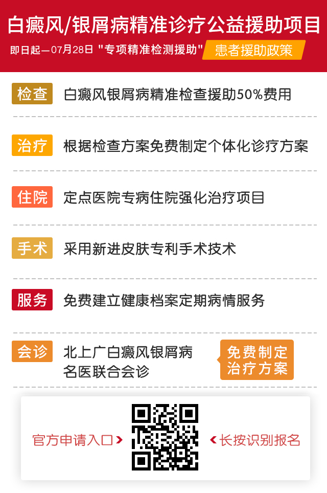 关爱白癜风/银屑病患者,切实帮助患者规范诊疗、减轻经济负担。本次公益援助仅针对白癜风(白斑)/银屑病(牛皮癣)患者且不限年龄段。