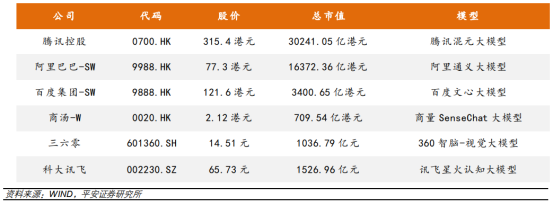 上半年截至6月1日收盘时国内研发大模型企业龙头标的