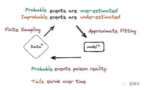 所有这些会出现MAD症状的模型都已经广泛应用,并运行一段时间了:自编码器可以处理诸如流行预测(例如社交媒体应用程序的算法)、图像压缩、图像去噪和图像生成等任务;高斯混合模型用于密度估计、聚类和图像分割等目的,在统计学和数据科学中特别有用。如今流行的 ChatBot, 其应用的大型语言模型(如ChatGPT,和Anthropic的Claude)使用自己生成的内容进行训练时,也容易在训练中出现MAD现象。同时,这些也强调了这些AI系统在我们生活中的重要性:算法人工智能模型在企业和公共领域都得到了广泛应用。但也粉碎了我们从某些AI模型中制造一个「仓鼠轮」的希望:将数据输入模型,然后将其自身生成的数据再次输入模型,产生更多的数据再反馈进模型的过程。反而这种训练方式会对当前存在的模型,以及这些模型的应用造成威胁。如果一个已经商业化使用的模型事实上是通过对其自身的输出进行训练的,那么该模型很可能已经向其平均值回归(记住,这需要大约5个输入输出周期才能显现)。![]()