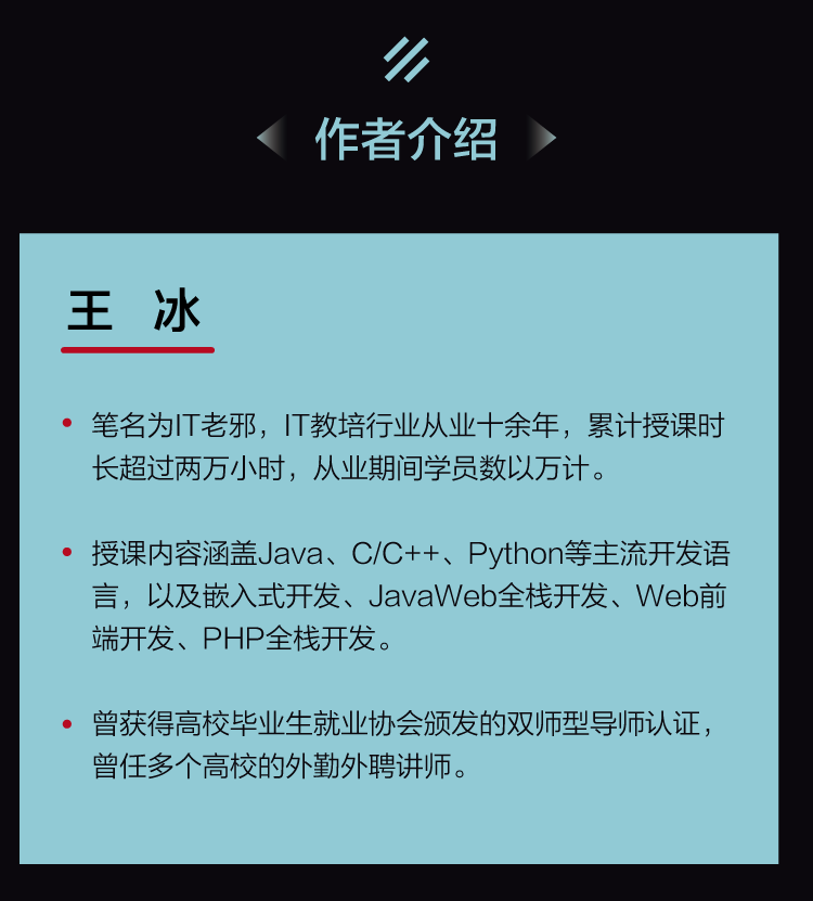 第14章至第24章:介绍Java中的Lambda、Stream流,以及常用API的使用,包括字符串、日期操作、文件、集合、多线程、I/O流、异常、反射等,这部分内容建议读者按照章节顺序依次学习。