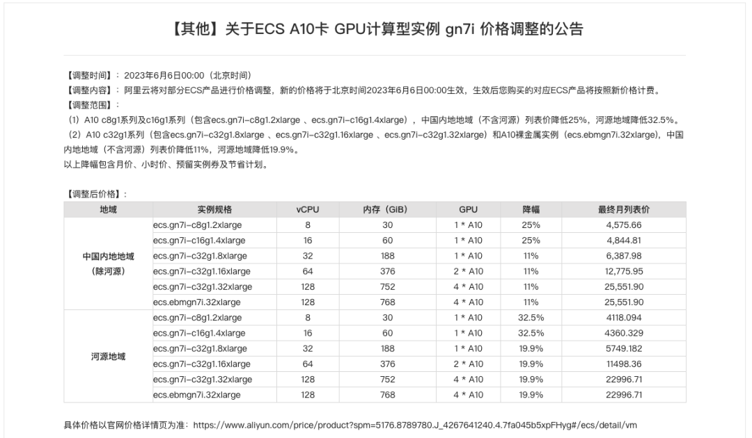 据阿里云官网,阿里云将对部分ECS产品进行价格调整,新的价格将于北京时间2023年6月6日00:00生效。(财联社)