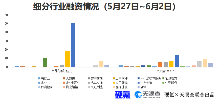本周(5月27日~6月2日)共发生68起融资事件,较上周的70起同比下降2.9%;近一周披露的交易总额超101.1亿人民币,较上周同比上升177.7%。