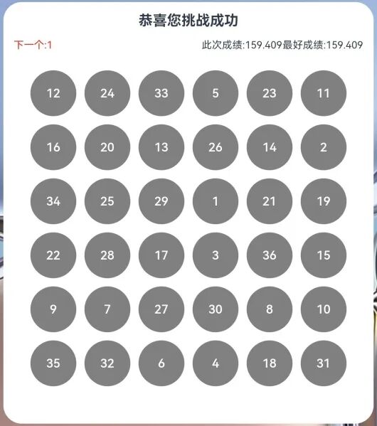 4x4 卡片显示的是 6x6 布局随机生成 1~36 数字,显示内容和游戏规则与 2x2 卡片一样。