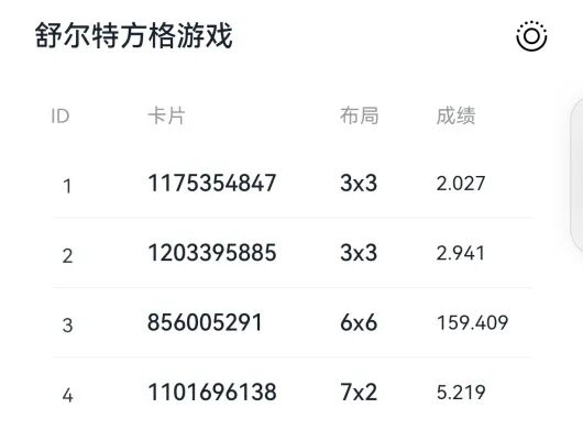 首次启动或点击 1x2 卡片进入到主界面,主界面显示各卡片游戏成绩记录。