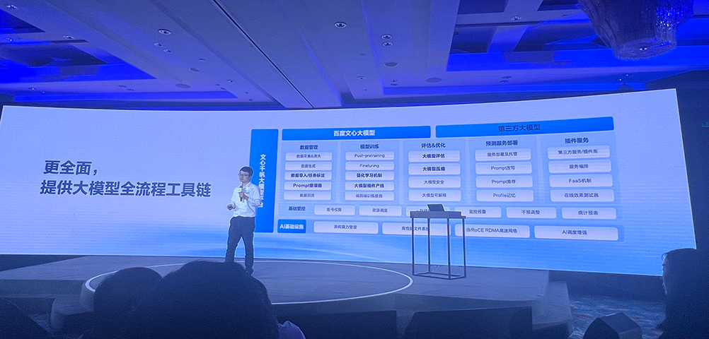 根据科技部新一代人工智能发展研究中心发布的《中国人工智能大模型地图研究报告》显示,目前中国10亿以上参数规模的大模型已达79个。但这可能仅仅是冰山之上的情况,一场“千模大战”在过去三个月里已经铺开。市场需求在过去三个月已发生微妙变化,也影响着智能云产业的发展走势。百度集团副总裁侯震宇在5月的闭门技术交流会上谈道,在3月16日文心一言刚开放时,来咨询的客户大多是CEO级别的一把手,从战略上认可大模型的重要性;两个多月之后,团队接触到越来越多业务负责人,他们希望更快用大模型提高业务能力,从而在竞争中获得优势。与此同时,随着AI大模型落地行业,一些实际挑战也显现出来。施恩告诉智东西,一是客户使用上的困难,比如大模型需要较好的Prompt(提示词)做触发,而一些客户难以结合场景去编写Prompt,就使效果打折扣;二是通用大模型与专用场景的匹配不足,专业知识库的缺乏阻碍大模型效果发挥;另外是与企业业务系统集成的挑战,这需要与更具行业经验的伙伴合作,等等。对此,百度实际上在文心一言上线之后就给出了解法——标准化平台赋能行业。3月27日,百度文心千帆一站式企业级大模型平台开启测试。这是一个包含了文心大模型及第三方模型,以及构建大模型能力所需要的全场景工具链。比如行业伙伴需要的SFT大模型效果调优、Prompt工程等,都可以从这个平台上获取。![]()