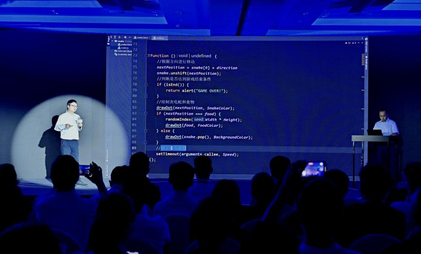 实际上,市面上已经有一些同类AI代码助手上线,包括微软旗下GitHub推出的Copilot X、AWS推出的CodeWhisperer等。那么Comate的实际体验效果如何?会上,施恩通过一个“贪吃蛇”小游戏的开发现场演示了Comate。当开发者输入“canvas”,以及“弹性布局,水平居中,垂直居中”等中文备注,Comate即自动识别语义,生成游戏画布代码。当他再输入“param color”、“left”、”food=”等颜色、方向、食物的简单词汇,Comate自动联系上下文理解指令,补全代码,并在多条推荐代码之间切换,选择合适代码,系统就直接生成了可运行的“贪吃蛇”小游戏。![]()
