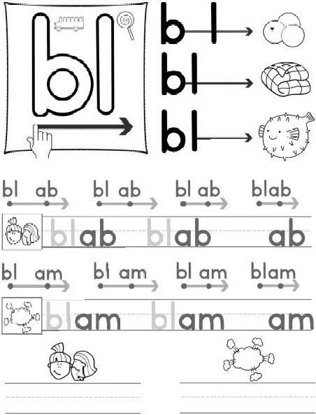 音节连读,单独发出每个字母或字母组合的声音,然后在将手指移过字母或字母组合和箭头时将它们组合在一起发音;