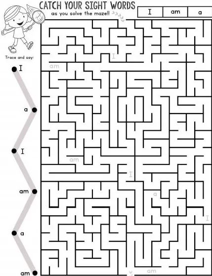 常见词迷宫,这是一个有趣的活动,让孩子们在迷宫中穿行时捕捉到所有的单词。鼓励孩子在他们找到的时候阅读这些词语,计算他们发现的数量;