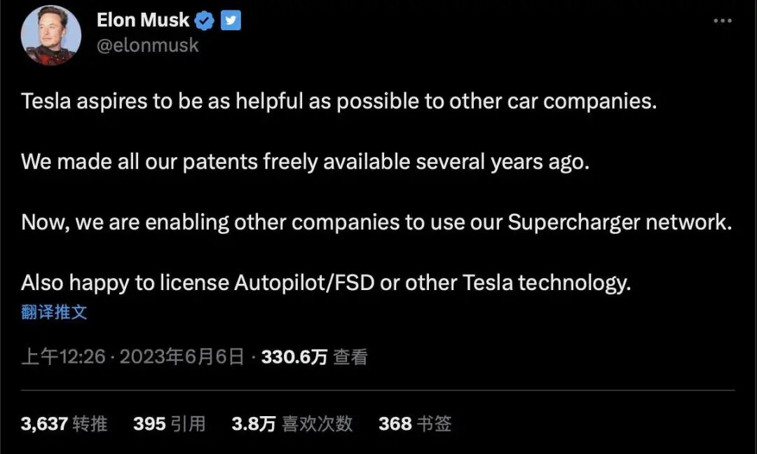「在智能座舱方面我们已经实现了超越,那么在自动驾驶技术上,我负责地说,我们的技术一定是远远超越他们(特斯拉)。」「在我的字典里有没有第二,必须第一,而且这个第一必须是世界第一。」这番「遥遥领先」的发言实在是让人感到亲切无比,不过,吹牛归吹牛,隔壁大哥一副「不信」的样子也是让人哭笑不得。华为的自动驾驶能否超越特斯拉这件事,留给时间去验证。有一件事,余承东倒是说对了——特斯拉的 FSD 自动驾驶技术足够领先,这在智能汽车业界已经达成了共识。在今年的 Sanford Bernstein 会议上,通用汽车首席执行官 Mary Barra 谈到了当前的全球电动车市场。Barra 认为,电动汽车在 10 万美元到 4 万美元的价格区间没有盈利能力,这样的情况将会在这十年中持续。但,Barra 丝毫没有掩饰对特斯拉的称赞,她认为特斯拉在全球的电动市场中,无论是电动汽车技术、盈利能力还是规模上都处在了领先的位置。更有意思的后续来了,马斯克在推特上迅速跟进了 Barra 的观点,他写道:“特斯拉尽可能地为其他的汽车友商提供帮助,特斯拉曾在几年前就将所有的专利免费公开。现在,更多的电动化的汽车友商也在使用特斯拉的超充网络,特斯拉也非常乐意将 Autopilot/FSD 技术授权给其他友商。”是的,在与福特顺利达成充电标准合作后,马斯克再次将 FSD 自动驾驶技术授权摆上了台面。事实上,这已经不是第一次马斯克谈及 FSD 专利共享了。毫不夸张地说,在纯电汽车技术领域,马斯克简直是个不折不扣的「开源狂魔」。2014 年 6 月, 马斯克在特斯拉官网博客中发布了一篇名叫「All Our Patent Are Belong to You」的文章,并宣布将会开放特斯拉旗下所有的电动汽车技术专利,同时,特斯拉将不会诉讼那些「真诚善意」使用专利技术的车企。在电池专利方面,特斯拉公开了电池组成、化学成分、电池热管理技术;动力单元方面则提供了电机类型、功率密度、控制算法以及高效能能量转化等关键信息;同时,特斯拉没有吝惜充电技术专利的分享,快充专利的开放涵盖了充电接口、充电管理系统以及充电协议等方面。不过,值得一提的是,尽管专利的开源也包括了特斯拉的自动驾驶技术,但特斯拉出于一些原因,并没有完全开源 Autopilot/FSD 技术的核心代码。谈到「慷慨」的专利开源,马斯克也曾经对此有过担忧。马斯克透露,专利壁垒的存在意义是防止有车企窃取了特斯拉专利技术,并利用庞大的量产规模压倒特斯拉。但经过特斯拉的内部评估,特斯拉在全球达到的规模足以抵御这样的专利风险。对于马斯克来说,特斯拉的真正竞争对手并非来自于其他的电动车制造商,而是传统燃油车。通过开放电动车技术专利,可以鼓励其他汽车制造商入局纯电汽车,推动电动汽车技术的发展和普及。想要把「电动车」这块蛋糕做大,合作会比竞争更温度和力度。专利的开放合作不仅体现在了硬件上,2014 年底,特斯拉开放了车辆的应用程序接口(API),支持第三方开发者与特斯拉进行更深度的交互,特斯拉几乎成为了世界上最开放、包容的电动车企。2021 年,在特斯拉发布 2020 年第四季度财报后的电话会议上,马斯克释放了共享 FSD 的更多可能性。马斯克透露,没有进一步公开 FSD 的核心代码与适配问题有关,将特斯拉自动驾驶系统适配其他车企的车型是一项复杂的工程。但,马斯克很快改变了主意。在电话会议上,马斯克直言,关于授权 FSD 自动驾驶技术,特斯拉已经和一批车企进行了初步交涉,特斯拉对此抱有非常积极、乐观的态度。不过,特斯拉并没有放出相关车企的更多信息,这件事也「无疾而终」。直到今年,特斯拉与福特达成了新的充电协议,将 NACS 充电插头集成到了福特汽车,让福特能够无缝使用特斯拉的超充网络。同时,特斯拉在美国本土向福特开放共享了多达 13000 座充电桩。「强强联手」让美国本土车企看到了充电的未来,FSD 授权共享再次被推上了口风浪尖。不过,天下并没有免费的午餐,使用特斯拉的开源专利也需要付出一些潜在代价,特斯拉共享 FSD 技术,同样也有着自己的「算盘」。尽管马斯克说过「我认为有许多公司在使用我们(特斯拉)的专利」,但在 2014 年开放专利以来,我们一直对于使用特斯拉专利的公司数量是模糊的。事实上,在特斯拉专利开源的诚信协议中,也有着鲜为人知的「霸王条款」。细看特斯拉专利开源的诚信条款,如果一家车企想要免费使用特斯拉的专利,他们就不能起诉特斯拉侵犯自己的专利。换句话来说,这变相「剥夺」了车企在专利基础上创新的自由,特斯拉可以安全地使用利用自家专利创新的专利技术,即使该车企没有将这项技术开源公布,也无法对特斯拉追究侵权责任,这份潜在的代价,足够吓退一大批掌握自主技术的车企。大型车企拥有广泛且成熟的专利组合,与特斯拉合作无疑是丢掉「灵魂」;而对于一些初创汽车公司来说,他们能够获得特斯拉经过市场验证的成熟专利,相对的,特斯拉也掌握了初创汽车公司技术的最新走向。当然,FSD 授权的最大受益者还是特斯拉,在今年的股东大会上,马斯克对 FSD Beta 表达了足够多的期待。根据特斯拉官方给出的数据,FSD Beta 正以一个难以置信的速度在增长,截至 2023 年 3 月,FSD Beta 累计行驶已经接近 2 亿英里(约 3 亿公里)。但对于马斯克来说,这还远远不够,马斯克寄予了 FSD 相当大的野心。在股东大会 Q&A 的环节中,有一