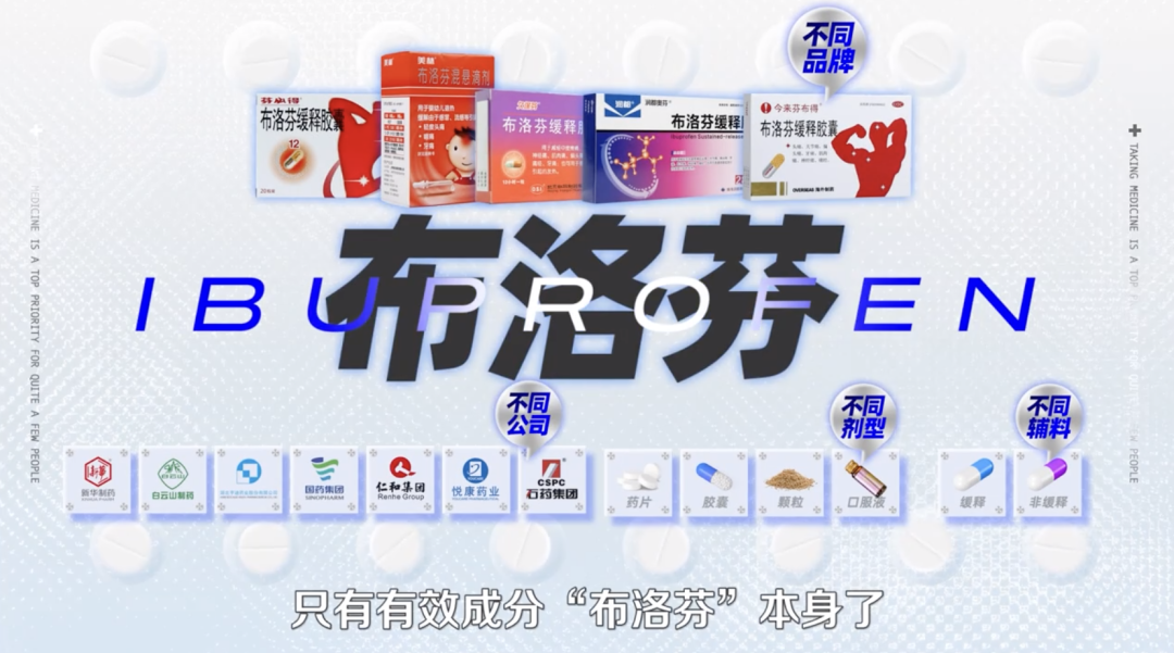 实际上药和药也有区别,按照国家药监局数据库,光是布洛芬,仅国产药品批文就达到558个,它们分了不同的品牌、不同的医药公司、不同的剂型,甚至不同的辅料,这样看下来,它们唯一相同的只有有效成分“布洛芬”本身了。