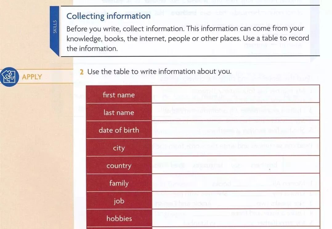这个层面是咱们最擅长的部分,也是国内教育最擅长引领学生的部分。但很遗憾,这是思维能力的最低层面。越往上,思维越高阶,所谓 Higher Level Thinking,主要是指2层以及以上的思维。金字塔的最高层,是 Create 创造。我们常说“咱们缺乏创造力”,但没有创造力的根本原因是什么呢?用Bloom的理论,我们可以看得很清楚,从“记忆”到“创造” ,中间还有四个台阶我们没爬完呢!而从1层开始,爬过2、3、4、5层,我们就自然能达到最高层 - 创造。所以说,培养创造力需要一个过程。这个过程,很大程度上,也就是 Critical Thinking 的过程。Unlock的编排理念就是建立在 Bloom’s Taxonomy 上的,每一课都提供了“思维能力训练环节”,跟该单元的语言学习环节紧密相关。一方面,让孩子学习如何用“批判性思维”工具更好地实现语言输出;另一方面,如何在语言的实际应用中,逐渐掌握这些思维技能。语言的输出和应用,主要体现在Writing(写作)和 Speaking(口语表达)中,Unlock中的思维练习也主要结合这两部分进行。比如,第一级会带孩子训练Collecting information 的思维能力,如何收集信息。
