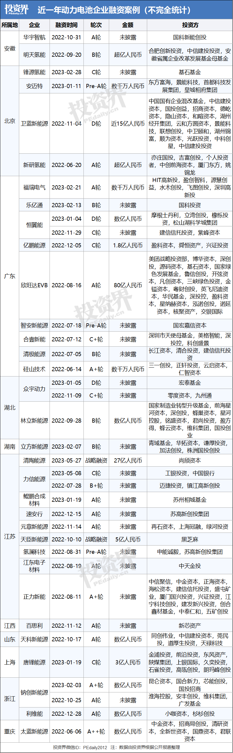 翻开动力电池融资名单,一只只超级独角兽映入眼帘,背后的投资军团更是星光熠熠。